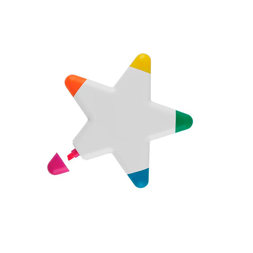 - Resaltador en forma de estrella con 5 puntas. Colores Anaranjado, Verde, Amarillo, Turqueza y Rosado.