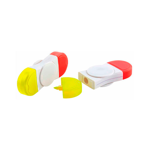 - Resaltador forma de spinner con dos puntas en color anaranjado y amarillo.