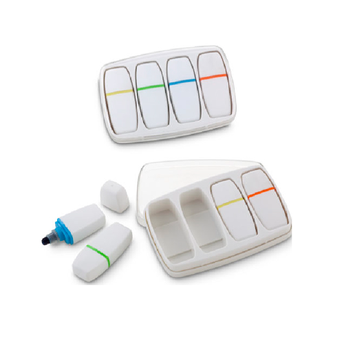 • Estuche: Alto: 2 cm Ancho: 6.5 cm Largo: 11 cm Resaltador: Alto 5.5 cm Ancho: 2.00 cm